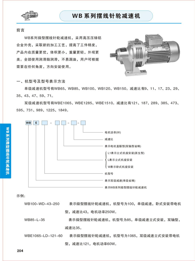 產品參數 >> WB系列微型擺線針輪減速機-